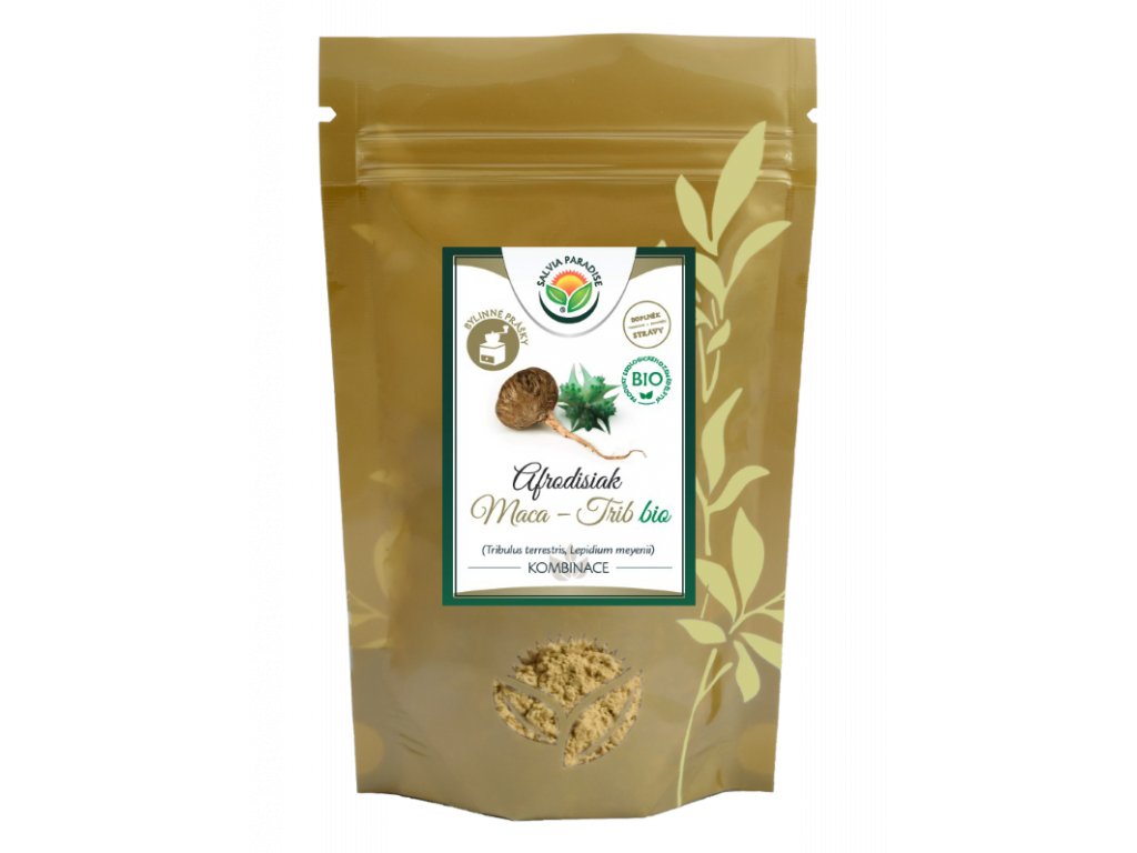 Maca – Trib BIO je směs dvou afrodisiakálních bylin, a to plodu kotvičníku zemního (obsahuje nejvíce protodioscinu z celé rostliny) a gelatinizované maky. Při jejich současném užití dochází k synergickému efektu, který vede ke znásobení jejich afrodisiakálních účinků.
