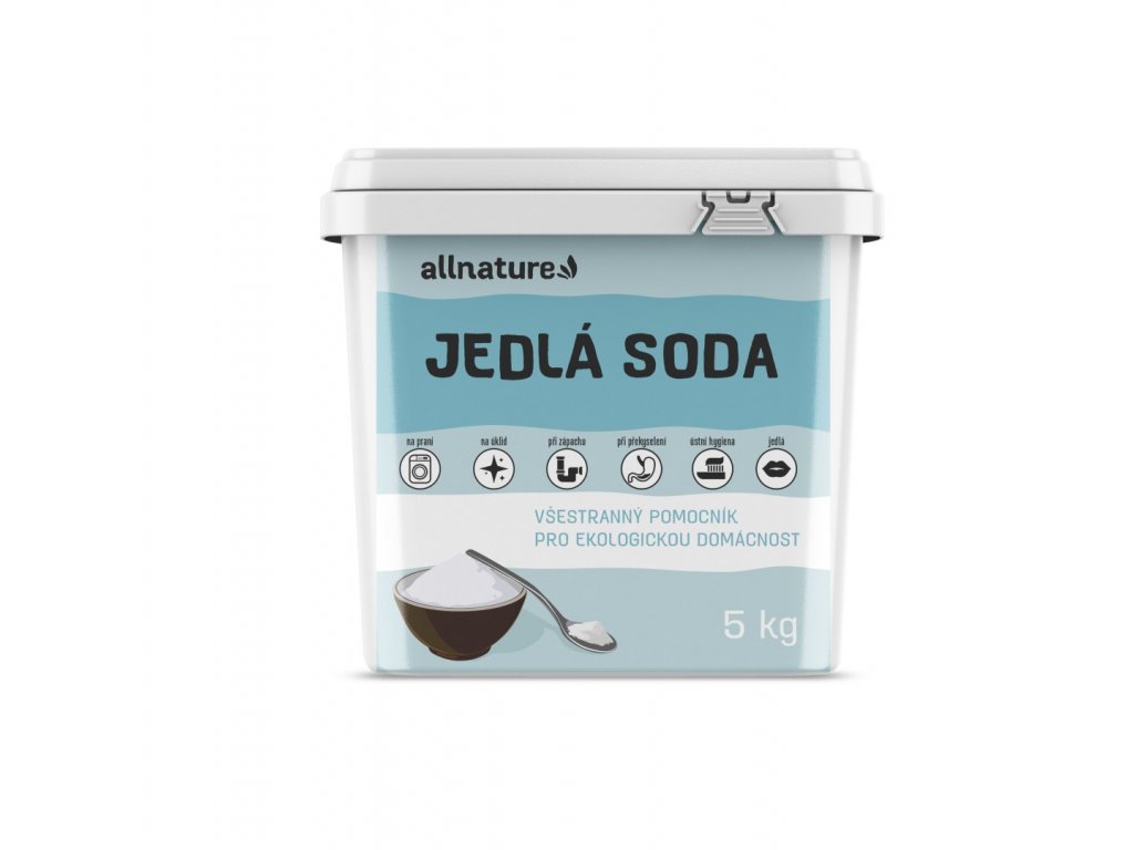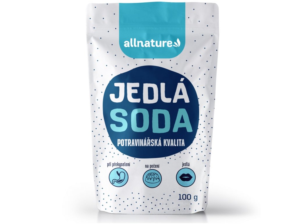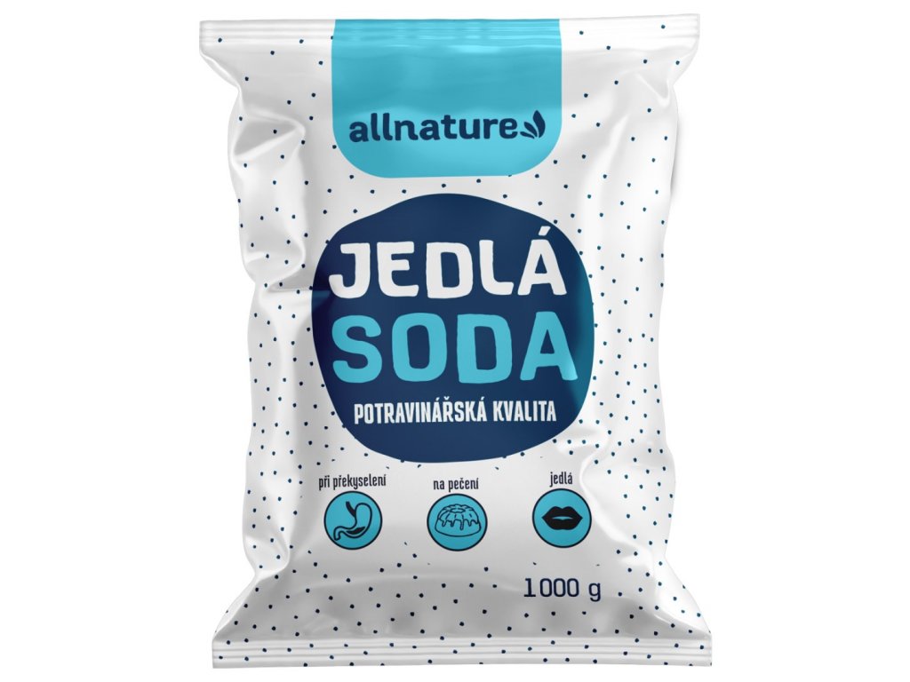 Allnature Jedlá soda je všestranný pomocník, který lze využít během úklidu domácnosti i při každodenní hygieně. Působí zásaditě, může pomoci při překyselení žaludku a pálení žáhy. Odstraňuje pigmenty a usazeniny na zubech. Čistí usazené nečistoty a mastnotu, na praní prádla.