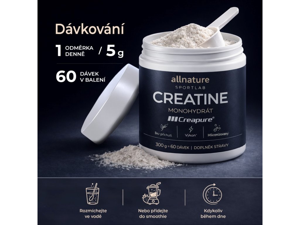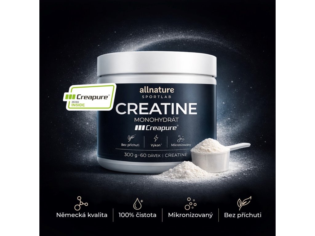 Allnature Kreatin monohydrát je vysoce čistý kreatin ve formě jemného prášku, určený pro podporu sportovního výkonu, síly a regenerace.