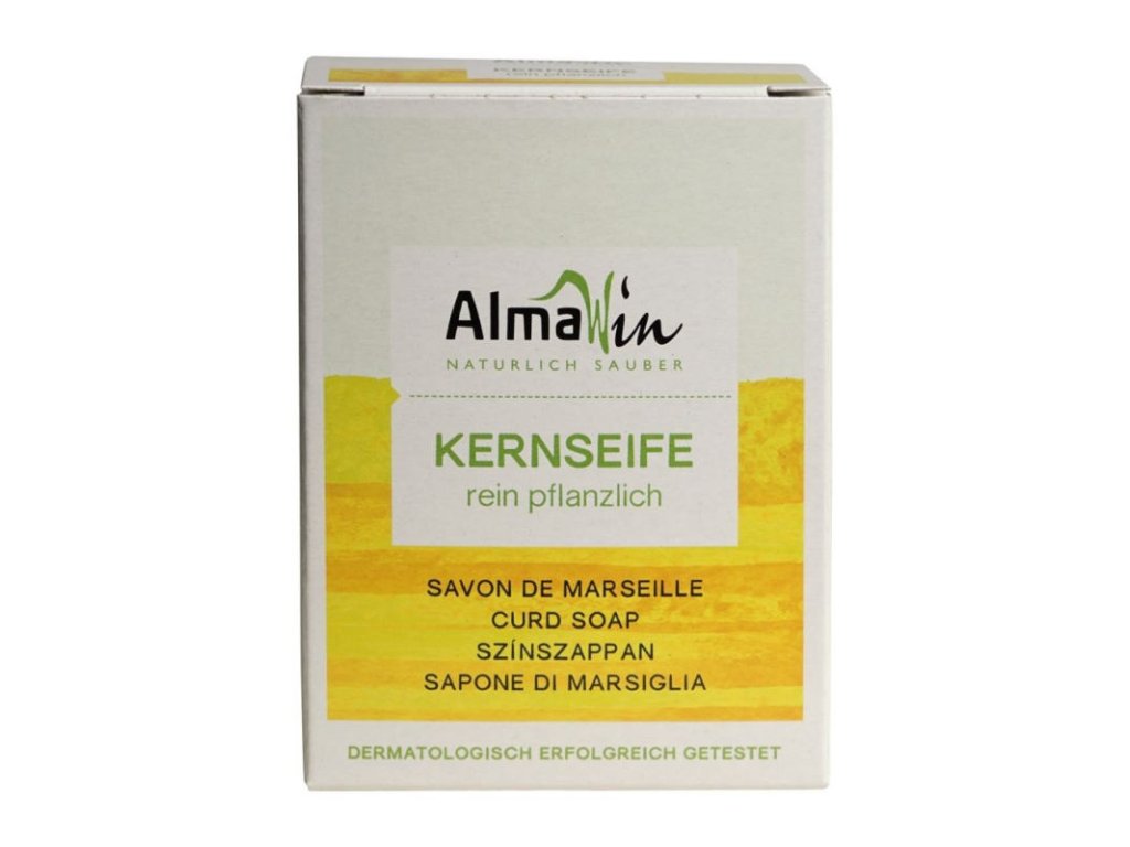 Rostlinné jádrové mýdlo ALMAWIN je šetrné k pokožce a pro příjemný pocit je lehce navoněné přírodní citronovou vůní. Díky svému složení je výborné jak na péči o pokožku, tak i na praní prádla – tak jak to znaly naše babičky.
