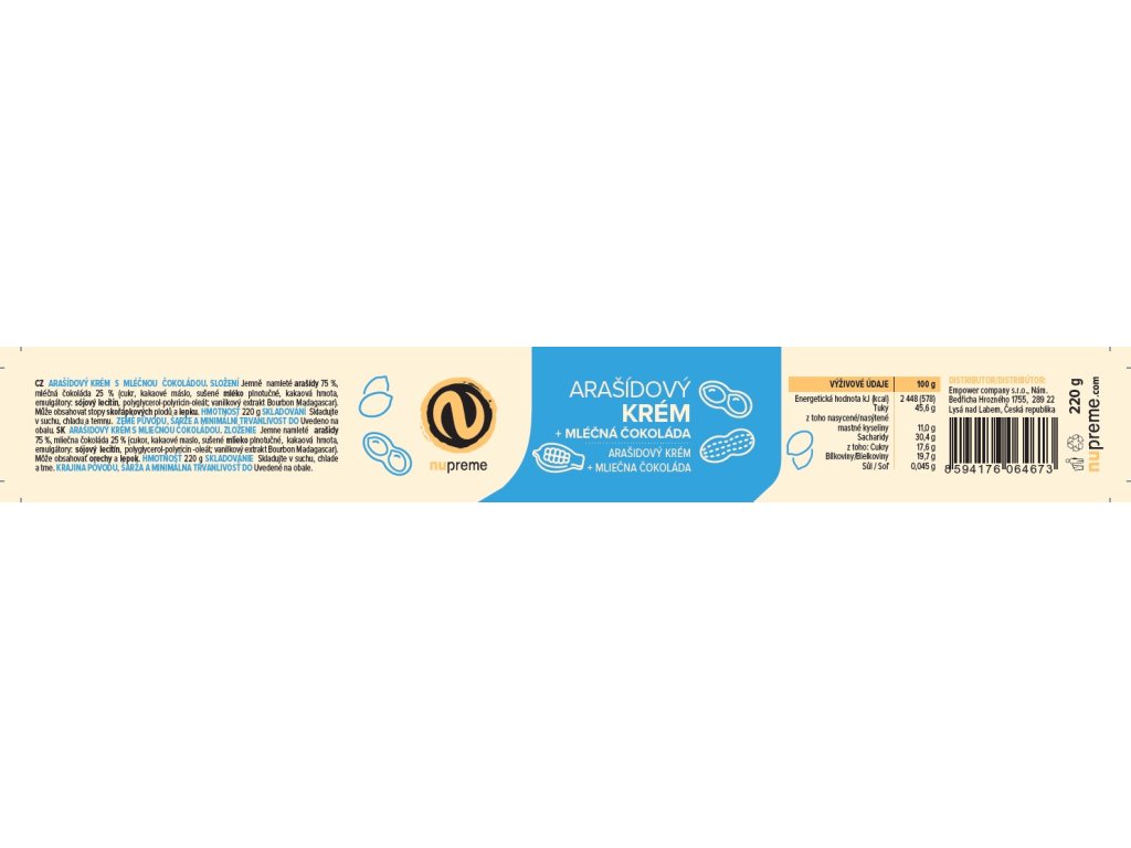 Nupreme Arašídový krém s mléčnou čokoládou 220g