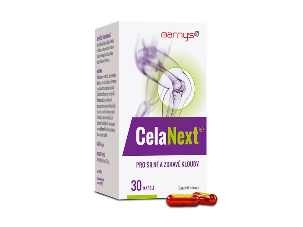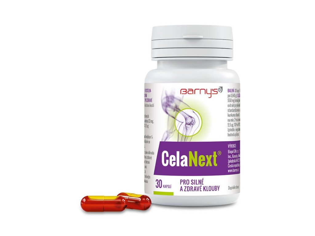 Barny´s CelaNext obsahuje značkový komplex rostlinných extraktů kurkumy a kadidlovníku s obsahem kurkuminu a kyseliny boswellové a vitaminu D pro zdravé svaly a kosti.