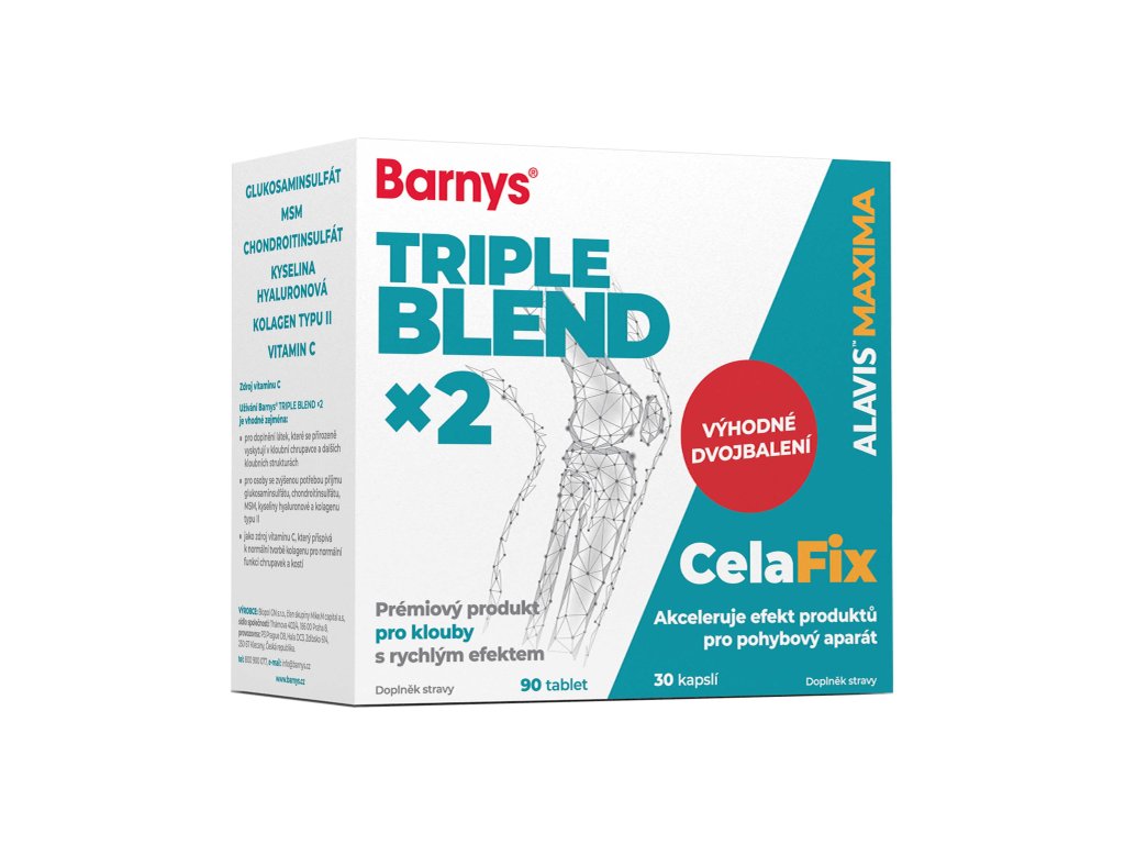 Barnys TRIPLE BLEND x2 obsahuje výhodné dvojbalení doplňků stravy Barny's® Triple Blend x2 a ALAVIS™ Maxima CelaFix.