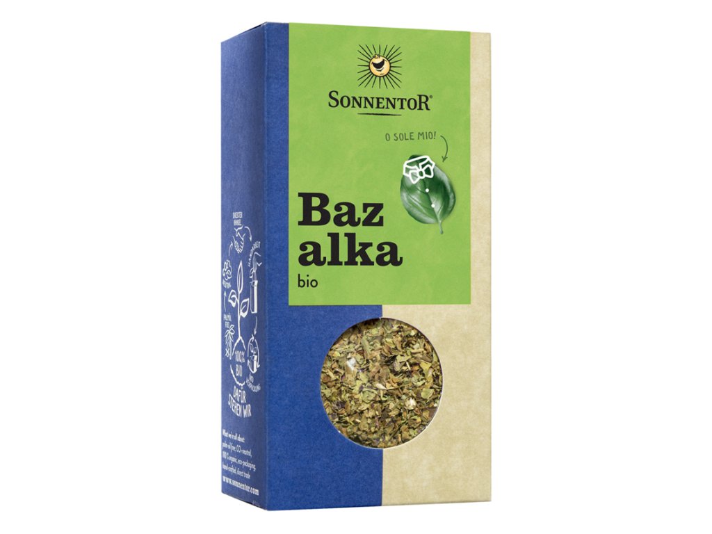 Bazalka bio 15g od výrobce Sonnentor. Produkt v bio kvalitě. Pěstováno metodou ekologického zemědělství. Bazalka je koření, bez kterého si pesto na těstoviny dokážeme jen stěží představit. Dávno není střeženým tajemstvím italské kuchyně a používá se do různých omáček a zeleninových salátů. S plátky rajčat a mozzarelou je výborným předkrmem. Když bazalku smícháme s nastrouhanou citronovou kůrou, česnekem a hnědým máslem, vznikne nám velmi chutná letní kreace pro vmíchání do rizota. TIP: Přidávejte až ke konci vaření, neboť bazalka vařením lehce ztrácí své aroma. Bazalka bio Skladovat v suchu a chladu. Tento produkt neobsahuje žádné alergeny.Doplňkové parametry
