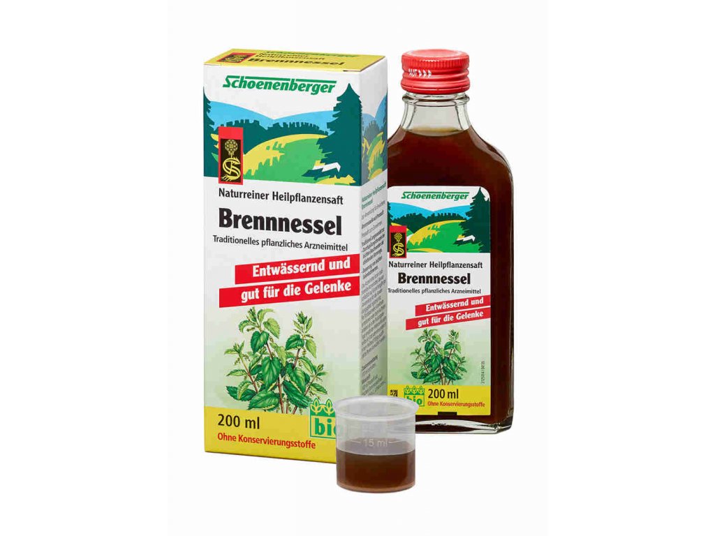 SCHOENENBERGER BIO Čerstvá rostlinná štáva – Kopřiva je získávána lisováním listů kopřivy. Šťáva z kopřivy výborně ovlivňuje činnost močových cest. Podporuje nejen vylučování moči, ale také působí jako prevence proti močovým kamenům a zánětům močového měchýře. Podporuje správnou funkci ledvin, které se starají o odstraňování nečistot z těla. Je doporučována při rekonvalescenci, nebo osobám v pokročilém věku. Jedná se o přírodní doplněk stravy, který podporuje zdraví a tělesnou harmonii.