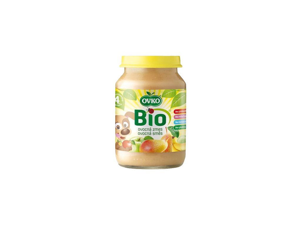 Bio ovocná směs Ovocný příkrm s hruškami a banány okyselený citrónovou šťávou, bez přidaného cukru a konzervantů. Od ukončeného 4. měsíce. Proč dětskou výživu OVKO Vysoký podíl ovoce (min. 80%) Široké spektrum živin a vlákniny Bez konzervačních látek a aroma Bez přidaného sladidla, barviva a soli Neobsahuje lepek
