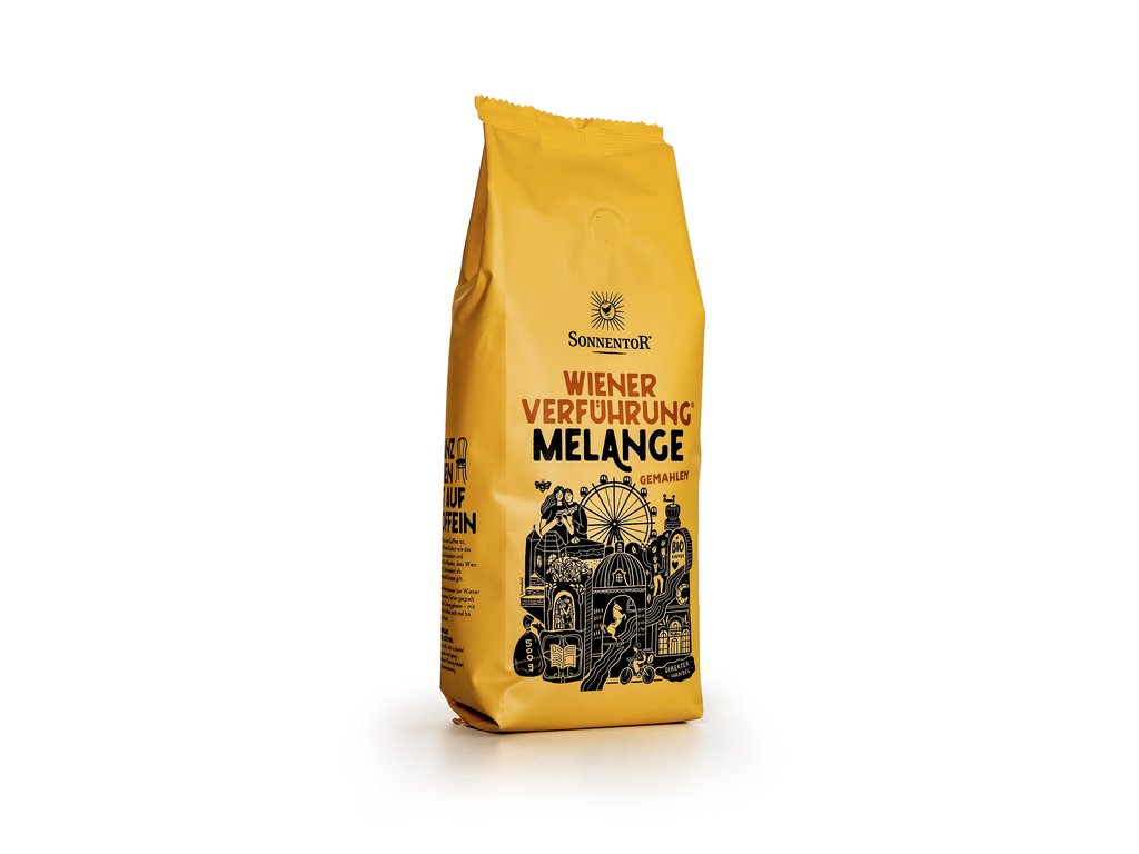 Káva Vídeňské pokušení® Melange bio, pražená, mletá 500 g od výrobce Sonnentor. Produkt v bio kvalitě. Pěstováno metodou ekologického zemědělství. Slovo Melange je francouzského původu, znamená směs a pod tímto názvem si nejen ve Vídni můžete objednat kávu s mlékem a troškou mléčné pěny. Je ale jedno, jestli si ji vychutnáte s mlékem nebo bez, Melange vás osloví čokoládově-ovocnou chutí a jemnou kyselinkou. Jedná se o 100% arabiku vypěstovanou na kávovnících rostoucích ve stínu pralesů Střední i Jižní Ameriky, je ručně sklízena a v sousedním Rakousku pražena. Skladovat v suchu a chladu. Tento produkt neobsahuje žádné alergeny.Doplňkové parametry