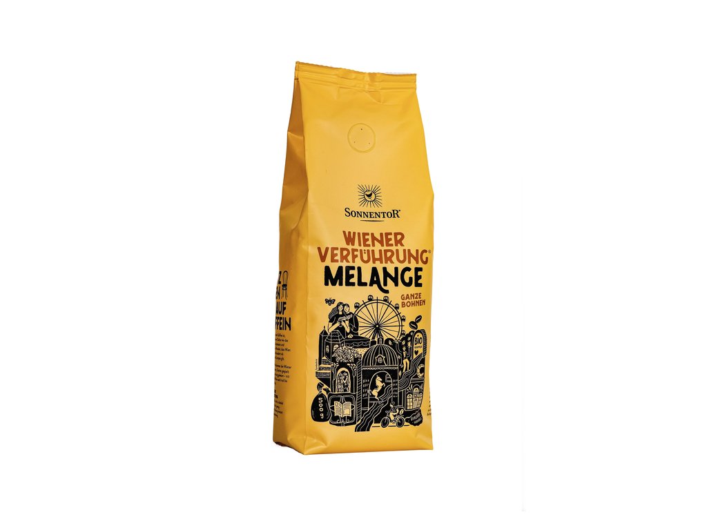 Káva Vídeňské pokušení® Melange bio, pražená, zrnková 500 g od výrobce Sonnentor. Produkt v bio kvalitě. Pěstováno metodou ekologického zemědělství. Slovo Melange je francouzského původu, znamená směs a pod tímto názvem si nejen ve Vídni můžete objednat kávu s mlékem a troškou mléčné pěny. Je ale jedno, jestli si ji vychutnáte s mlékem nebo bez, Melange vás osloví čokoládově-ovocnou chutí a jemnou kyselinkou. Jedná se o 100% arabiku vypěstovanou na kávovnících rostoucích ve stínu pralesů Střední i Jižní Ameriky, je ručně sklízena a v sousedním Rakousku pražena. Skladovat v suchu a chladu. Tento produkt neobsahuje žádné alergeny.Doplňkové parametry