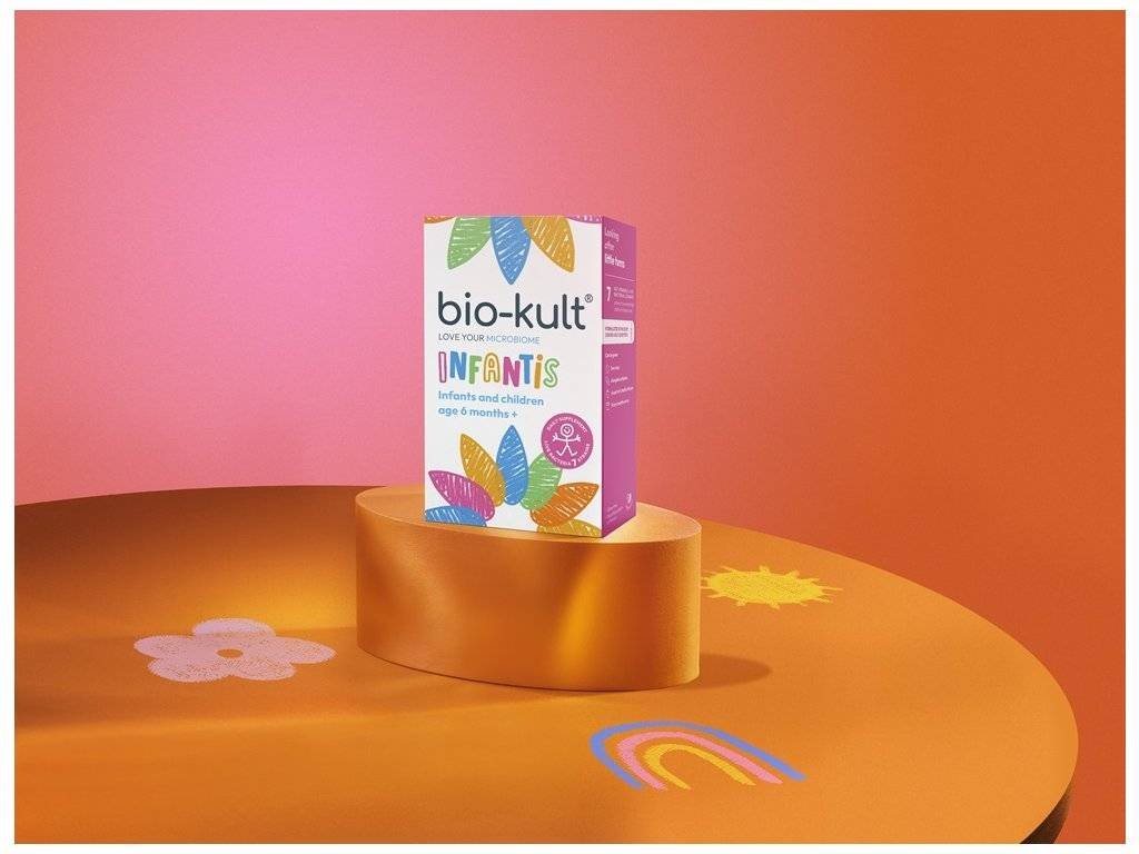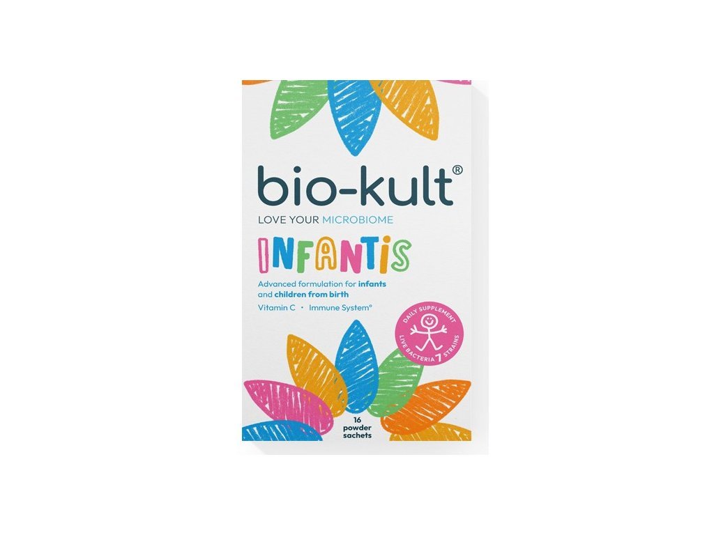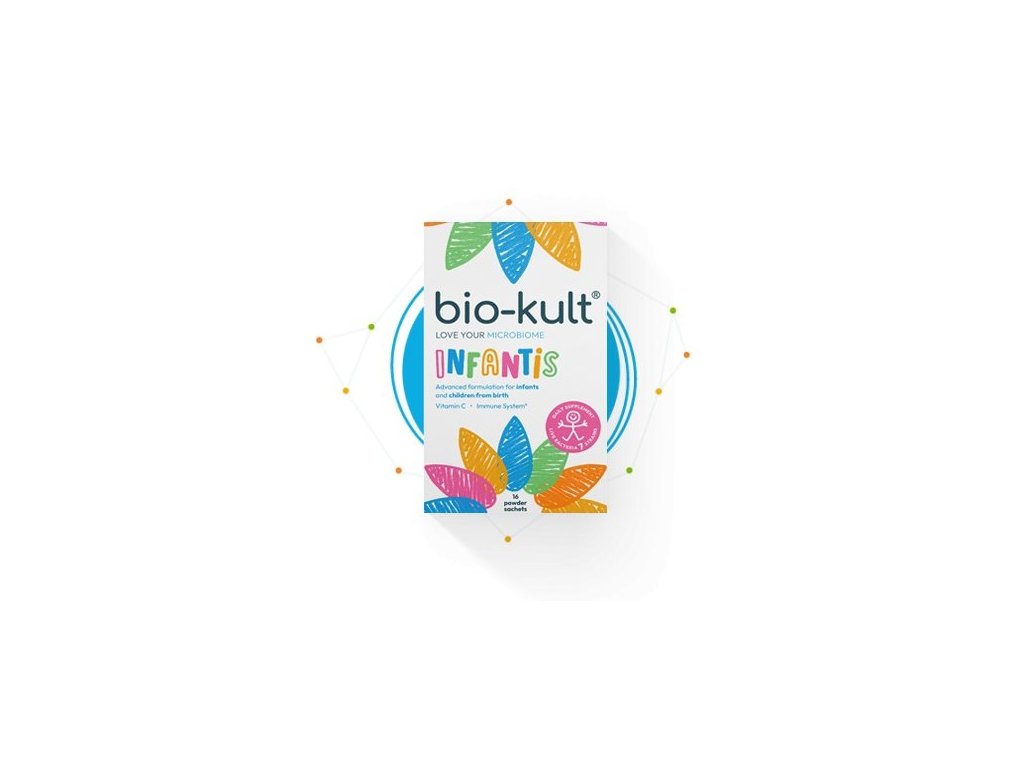 Bio-Kult Infantis je vědecky vyvinuté, moderní probiotikum pro kojence, batolata a malé děti. Obsahuje sedm vědecky prozkoumaných probiotických kmenů, prebiotika (frukto-oligosacharidy FOS). FOS selektivně podporují růst prospěšných střevních bakterií. Jednotlivé kmeny jsou speciálně ošetřeny tvz. mikroenkapsulací, čímž se zajistí jejich stabilita a odolnost Vitamin C přispívá k normální funkci imunitního systému, tvorbě kolagenu, který je důležitý pro kosti a zuby a pomáhá také ke snížení pocitu únavy a vyčerpání.