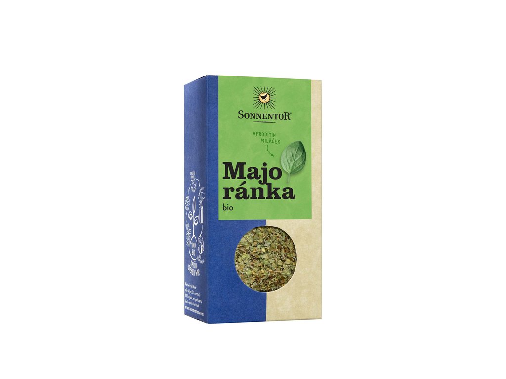 Majoránka bio 10g od výrobce Sonnentor. Produkt v bio kvalitě. Pěstováno metodou ekologického zemědělství. Majoránka i dobromysl (neboli oregano) pocházejí z rodu hluchavkovitých, čímž se velmi podobají. Vzájemná sourozenecká harmonie se tu však nekoná. V kuchyni platí: buď jedno, nebo druhé. Majoránka má podstatně jemnější vůni než oregano a taky chutná méně peprně a jemně nasládle. Její jemné aroma báječné dochutí čerstvý sýr nebo zeleninový salát. Výborně se hodí k vydatným zimním pokrmům jako je bramborová polévka nebo zvěřina. Dobře harmonizuje s bobkovým listem a jalovcem. Majoránka chutná skvěle s kapustou nebo luštěninami. TIP: Majoránku přidejte až ke konci vaření, aby se nevytratilo jemné aroma. Neměla by chybět v žádné domácnosti. Majoránka bio Skladovat v suchu a chladu. Tento produkt neobsahuje žádné alergeny.Doplňkové parametry