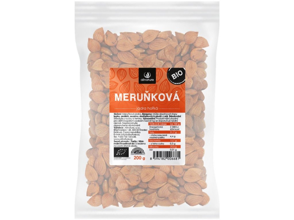 Složení: Meruňková jádra. Produkt je v BIO kvalitě z