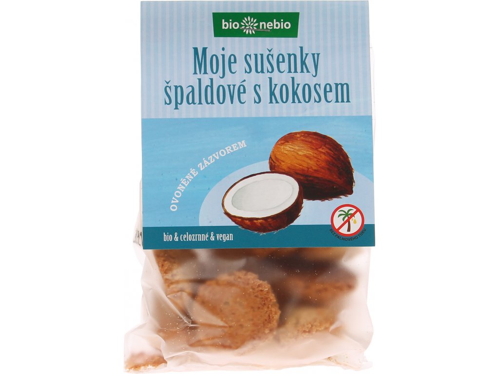 špaldová mouka* 40 %, strouhaný kokos* 23 %, přírodní třtinový cukr*, kokosový