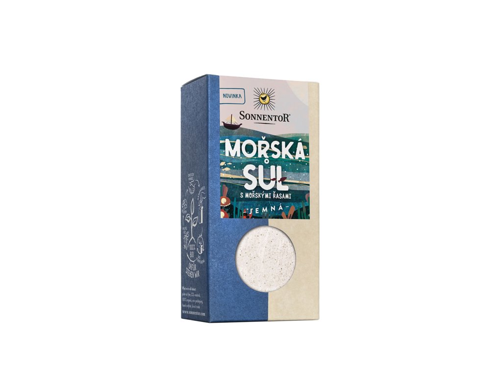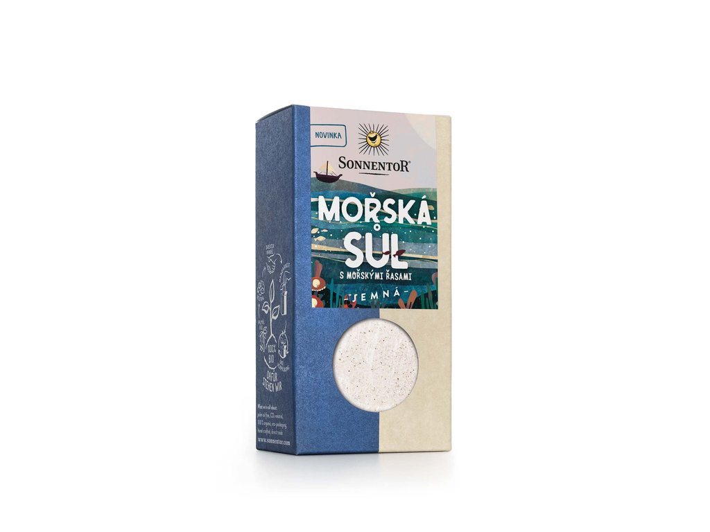 Mořská sůl s mořskými řasami obsahujícími jód 150 g od výrobce Sonnentor. Produkt v bio kvalitě. Pěstováno metodou ekologického zemědělství. Tento jemný poklad Středozemního moře je získáván odpařováním v mělkých mořských pánvích, tzv. solných zahradách. Po vysušení jsou do soli přimíchány mleté mořské řasy Laminaria Digitata, které obsahují přirozeně vázaný jód. Čeká vás tedy dokonale mořský požitek! Mořská sůl s mořskými řasami obsahujícími jód Skladovat v suchu a chladu. Tento produkt neobsahuje žádné alergeny.Doplňkové parametry
