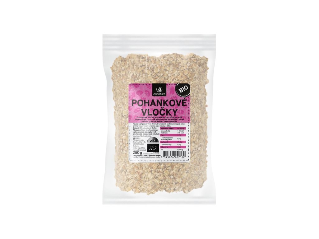 Pohanka k nám doputovala už ve 12. století z Asie. Největší oblibě se ale těší až nyní, z důvodu svých mnoha benefitů, mezi kterými je především fakt, že neobsahuje lepek. Pohankové vločky mají vysokou nutriční hodnotu a jsou zdrojem minerálních látek. Skvěle se s nimi pracuje v mnoha receptech. Už jste vyzkoušeli například pohankové pomazánky nebo krémové polévky? Pokud ne, je na čase zařadit 100% BIO Allnature Pohankové vločky do kuchyně
