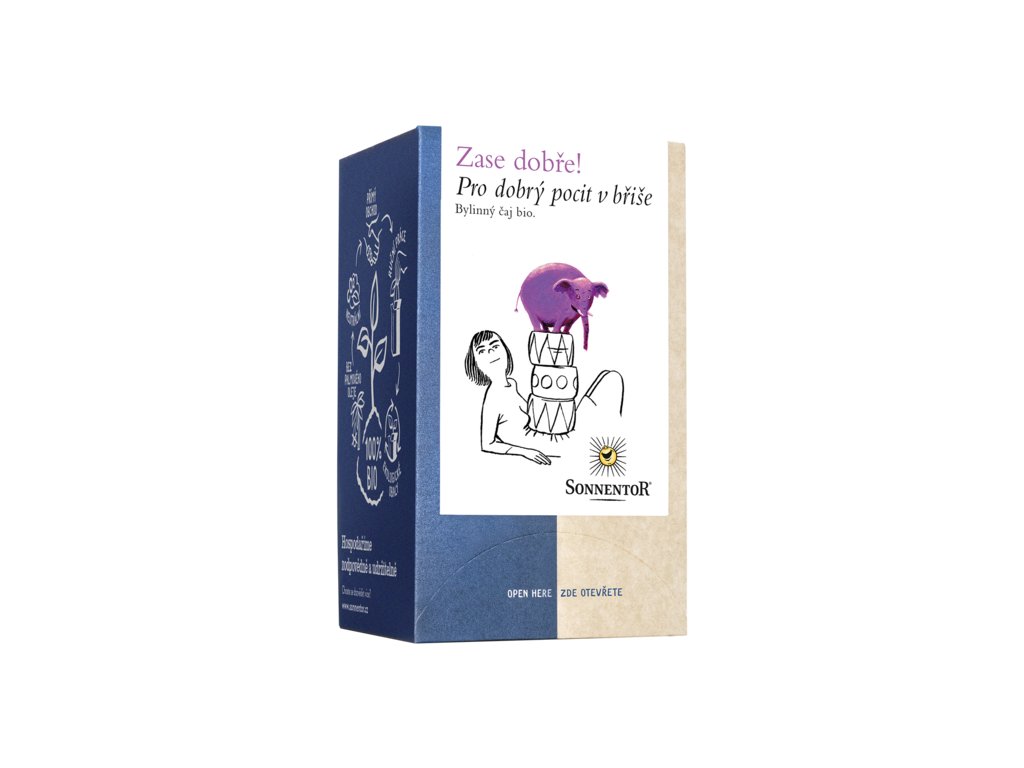 Pro dobrý pocit v břiše bio 27g porc.dvoukomorový od výrobce Sonnentor. Produkt v bio kvalitě. Pěstováno metodou ekologického zemědělství. Ulevte svému bříšku a vychutnejte si šálek této vyvážené bylinné čajové směsi s meduňkou a mátou. 18 nálevových sáčků à 1,5 g Návod k přípravě: čajový sáček na šálek (cca 250 ml) přelijte vroucí vodou a nechte 5-10 min. luhovat. Sléz nať bio, Meduňka bio, Máta kadeřavá bio, Řecký horský čaj bio, Měsíček květ bio, Řebříček bio Skladovat v suchu a chladu. Tento produkt neobsahuje žádné alergeny.Doplňkové parametry