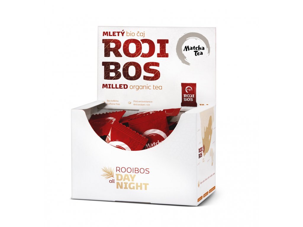 Bio Kyosun Rooibos je jemně mletý prášek z keře čajovce kapského. Roste v Jižní Africe, kde je velmi oblíbeným nápojem, který uvolňuje mysl, odbourává stres a je plný antioxidantů. Samotný rooibos je oblíbený po celém světě, my vám však přinášíme novinku – náš Bio Kyosun Rooibos má podobu lehkého mletého prášku. Díky tomu, že nepijete pouze výluh, ale vychutnáváte si celou rostlinu rooibosu rozemletou na extra jemný prášek, dodáte vašemu tělu vysokou dávku antioxidantů, minerálů a snadněji se zbavíte stresu.