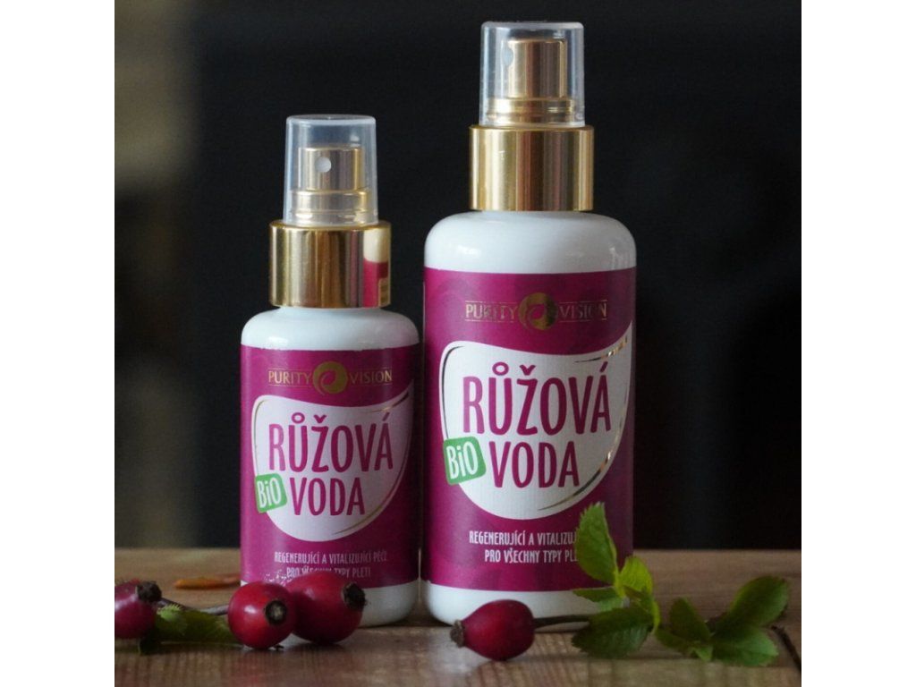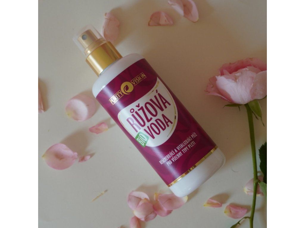 100% Bio Růžová voda je vyrobená šetrnou parní destilací ze vzácné růže