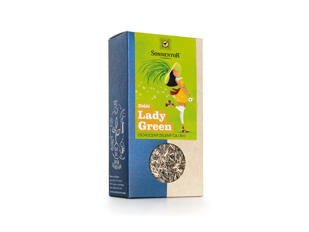 Sonnentor Bio Svěží Lady Green , ochucený zelený čaj, 90 g sypaný