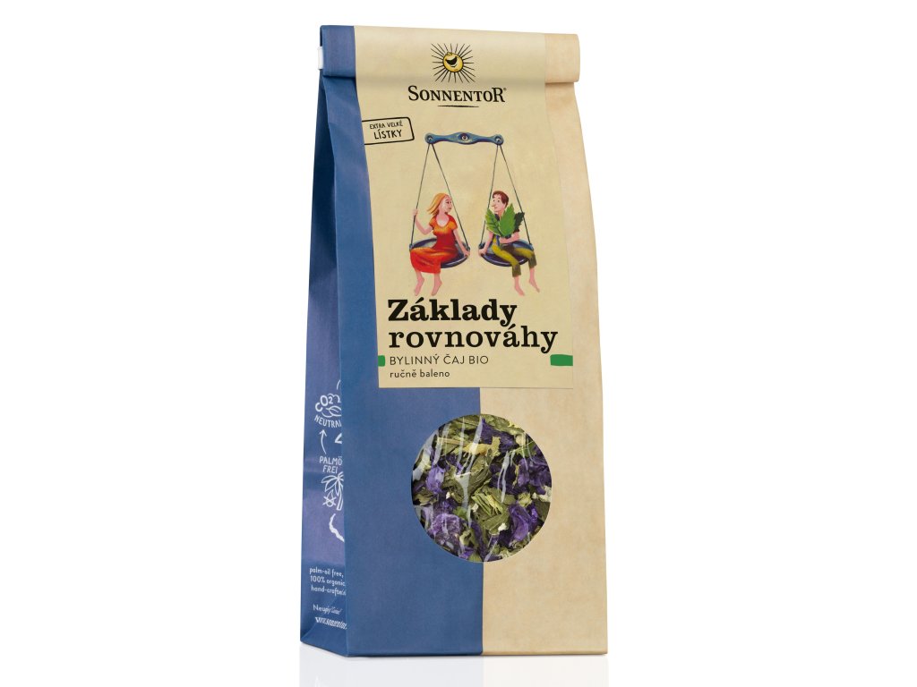Základy rovnováhy bio syp. 50g od výrobce Sonnentor. Produkt v bio kvalitě. Pěstováno metodou ekologického zemědělství. Rovnováha je jedním z klíčových slov v dnešní uspěchané době. Zkuste v sobě pocítit vyrovnanost v práci, v rodinném životě i ve vašem volném čase. Tento jemný bylinný čaj jsme se snažili vyladit tak, aby byl příjemný k celodennímu vychutnávaní a hodí se i pro období půstu. Návod k přípravě: čajovou lžičku na šálek (cca 250 ml) přelejte vroucí vodou a nechte 5-10 min. luhovat. Meduňka bio, Sléz nať bio, Malina list bio, Máta kadeřavá bio, Lípa květ bio, Černý bez květ bio, Chrpa květ bio Skladovat v suchu a chladu. Tento produkt neobsahuje žádné alergeny.Doplňkové parametry