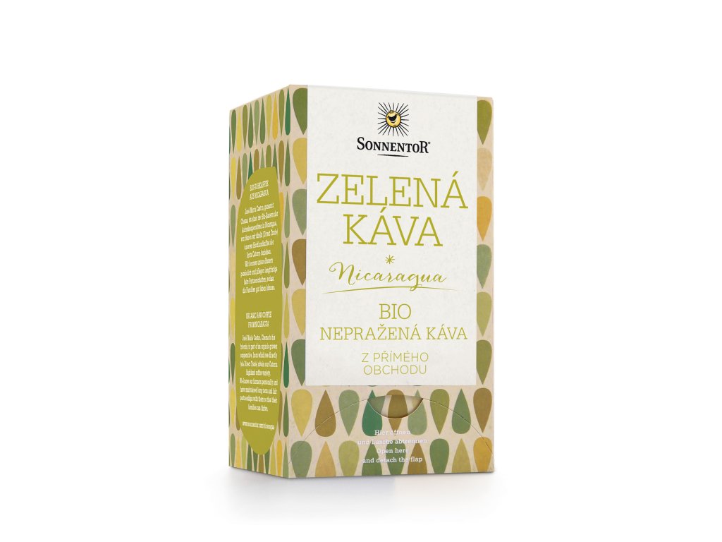 Zelená káva bio 54 g, porc. dvoukomorový od výrobce Sonnentor. Produkt v bio kvalitě. Pěstováno metodou ekologického zemědělství. Zelená káva z nepražených kávových bobů pochází z plantáže vysokohorské oblasti v Nikaragui. Vychutnejte si jedinečnou chuť zelené kávy nejlépe po sportovním výkonu i po každém jídle. 18 nálevových sáčků à 3 g Návod k přípravě: čajový sáček na šálek (cca 250 ml) přelejte vroucí vodou a nechte 2-3 min. luhovat. Zelená káva bio, celá Skladovat v suchu a chladu. Tento produkt neobsahuje žádné alergeny.Doplňkové parametry