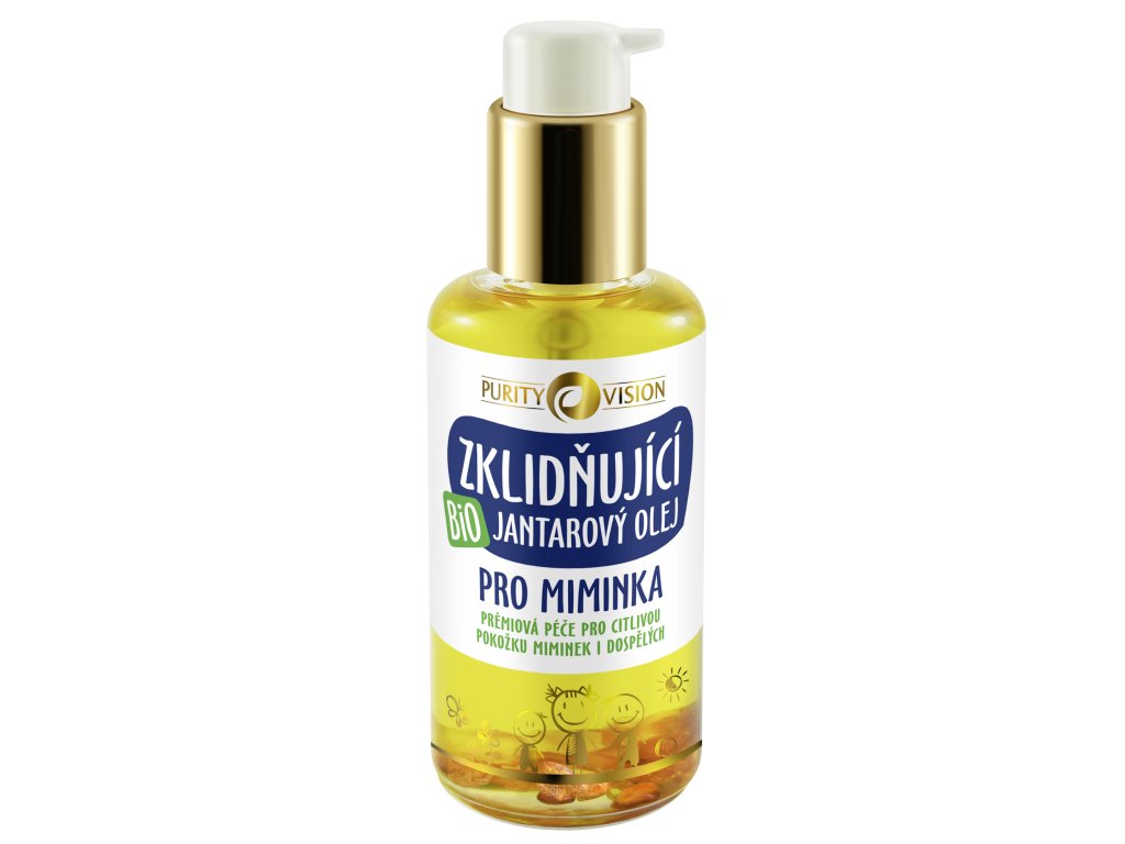 Bio Zklidňující Jantarový olej pro miminka PURITY VISION jemně pečuje o pokožku miminek, dětí i dospělých. Vyvážený poměr pečujících surovin pokožku zklidňuje, regeneruje, zvláčňuje a zajistí ochranu pro namáhaná místa. Zanechává pokožku hedvábně jemnou bez nepříjemného mastného pocitu.