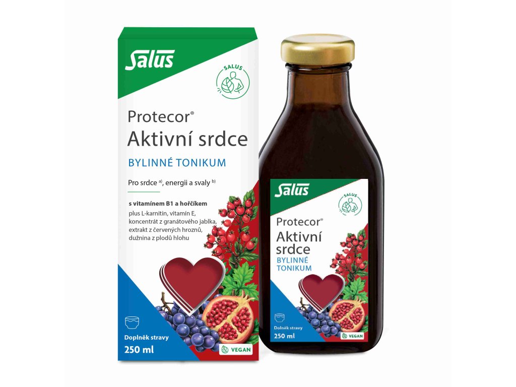 SALUS Bylinné tonikum Protecor® je chutný a zdravý potravinový doplněk podporující normální srdeční funkce díky vitamínu B1 a normální funkci svalů díky obsaženému hořčíku.