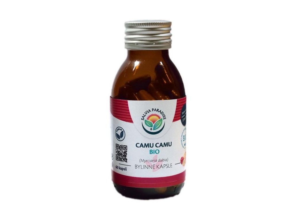 Camu camu patřící do skupiny zvané „super ovoce” je skutečným darem amazonských pralesů. Prášek z tohoto kyselého ovoce obsažený v kapslích Salvia Paradise® je bohatým zdrojem především přírodního vitamínu C. Ten, jak známo, přispívá k normální funkci imunitního systému, k ochraně buněk před oxidativním stresem, k snížení míry únavy a vyčerpání. Vitamin C zvyšuje vstřebávání železa, podporuje normální funkci nervové soustavy a přispívá k normální psychické činnosti.