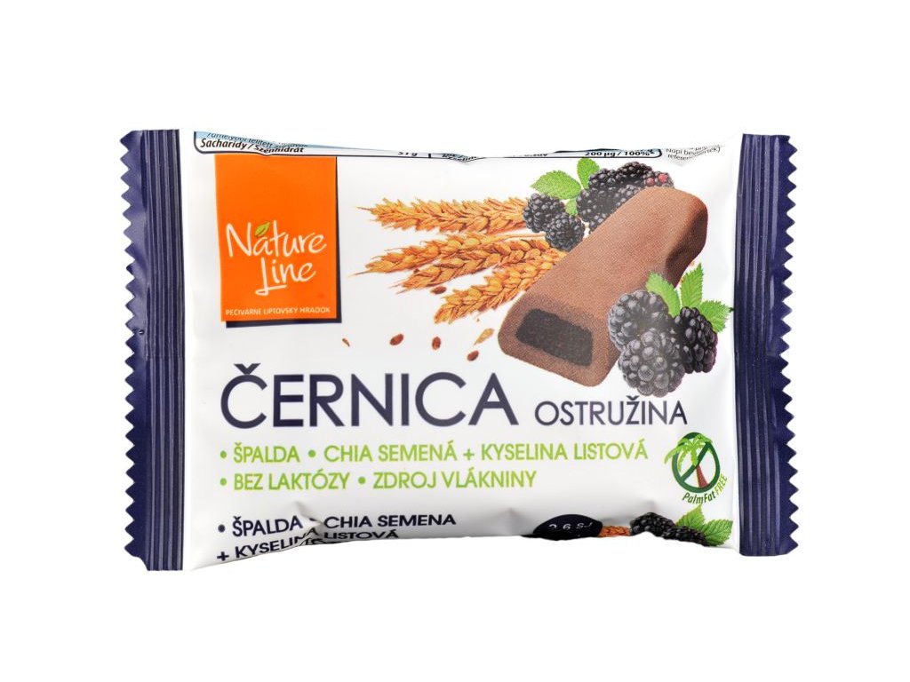 Celozrnné sušenky ze špaldové mouky s lahodnou aromatickou ostružinovou náplní a chia semínky. Bez palmového tuku. Bez laktózy. Zdroj vlákniny.
