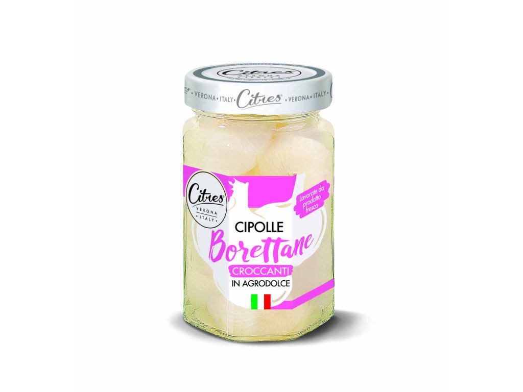 Cibulky se nazývají Borettane podle města Boretto, v provincii Reggio Emilia, kde byly po dlouhá léta pěstovány. Jsou nezaměnitelnou odrůdou díky svému zploštělému tvaru se slámově zbarvenou slupkou. Mají silnou a zároveň velmi sladkou chuť. Zpracovávají se od srpna do prosince z čerstvých 100% italských cibulek té nejlepší velikosti 32-38 mm. Cibulky Borettane jsou ideální pro přípravu jedinečných a neodolatelných pokrmů a potěší všechny mlsné jazýčky.