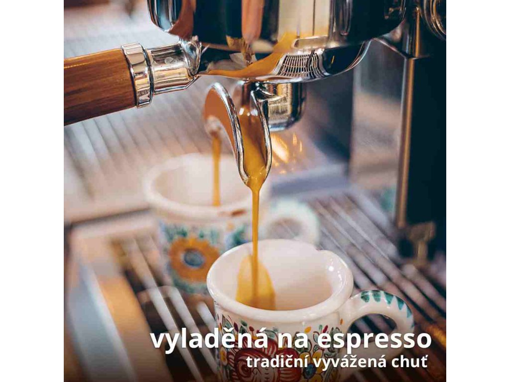 Káva je vhodná na espresso — pro kavárny, kanceláře a pro přípravu v domácím espresso kávovaru.
