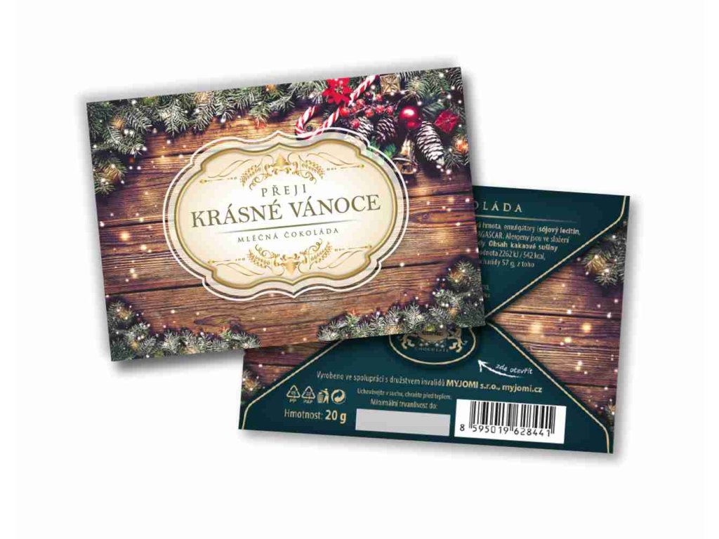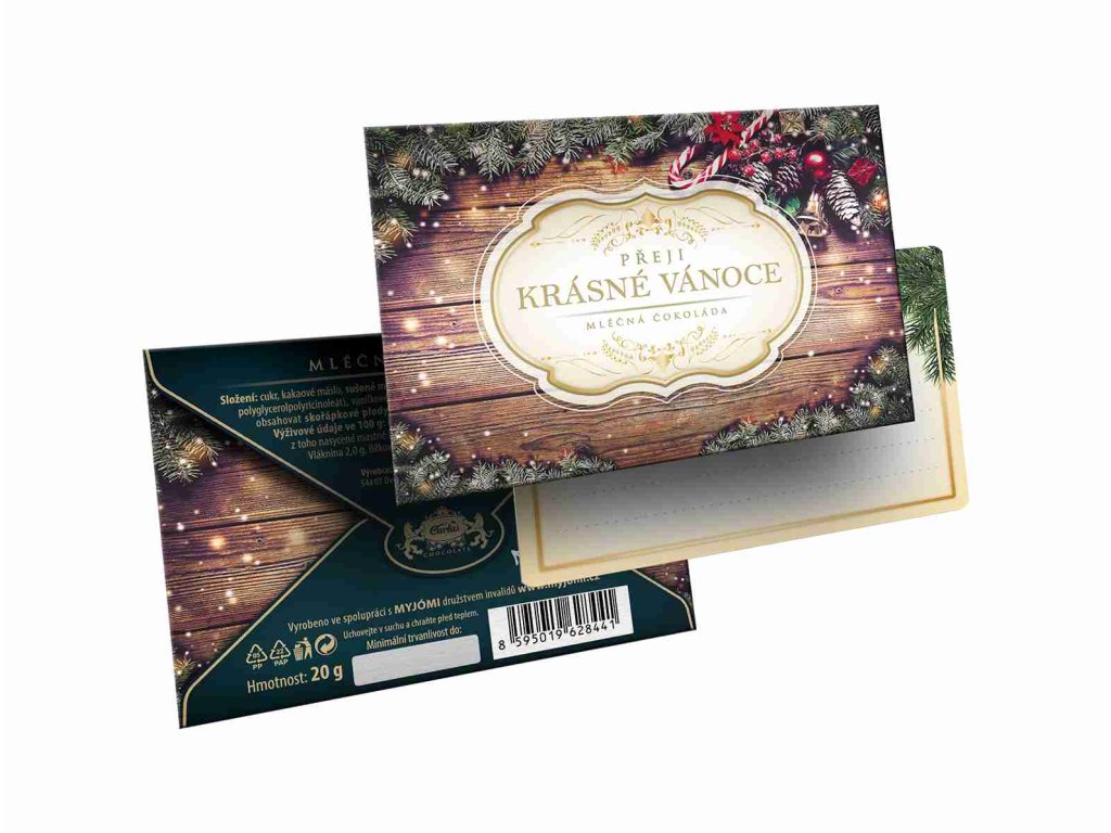 Carla Obálka Přeji krásné vánoce motiv jehličí Mléčná čokoláda 20 g