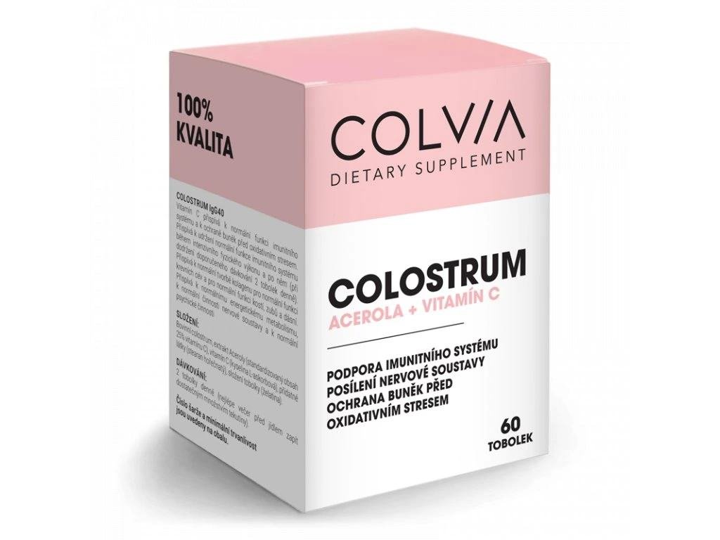 COLVIA® Colostrum + Acerola + vitamín C je unikátní kombinace bovinního (kravského) colostra a vitamínu C ve formě extraktu z aceroly a kyseliny L-askorbové. Tento doplněk stravy je cenným zdrojem více než 250 biologicky aktivních složek, mezi které patří zejména imunoglobuliny IgG, laktoferin, laktoperoxidáza a další aktivní peptidy.