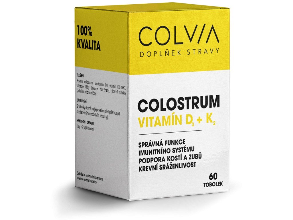 Kolostrum neboli mlezivo je počáteční mléko, které se tvoří první hodiny po porodu. Obsahuje komplex více než 250 bioaktivních látek, důležitých mimo jiné pro imunitní systém novorozence. COLVIA Colostrum + vitamín D3 + K2 60 tobolek je doplněk stravy s obsahem sušeného bovinního kolostra + vitaminy D a K, které jsou důležité pro udržení zdravých kostí.