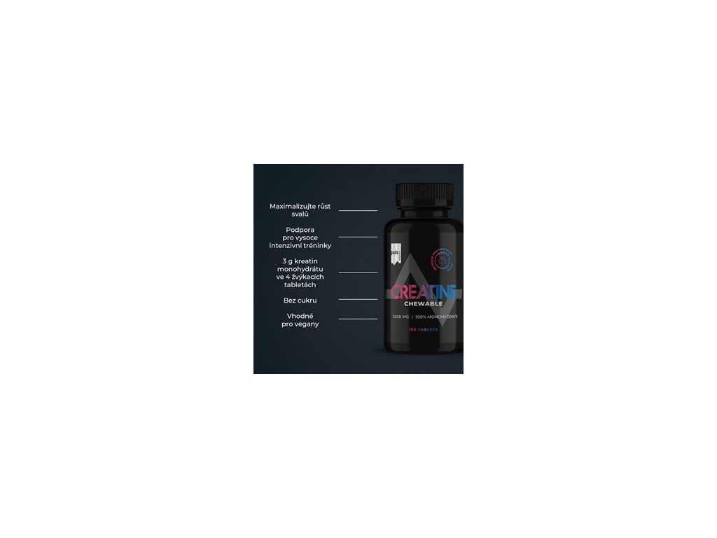 | 3g kreatin monohydrátu / 4 tablety | | Bez cukru | | Vhodné pro vegany | ||||||