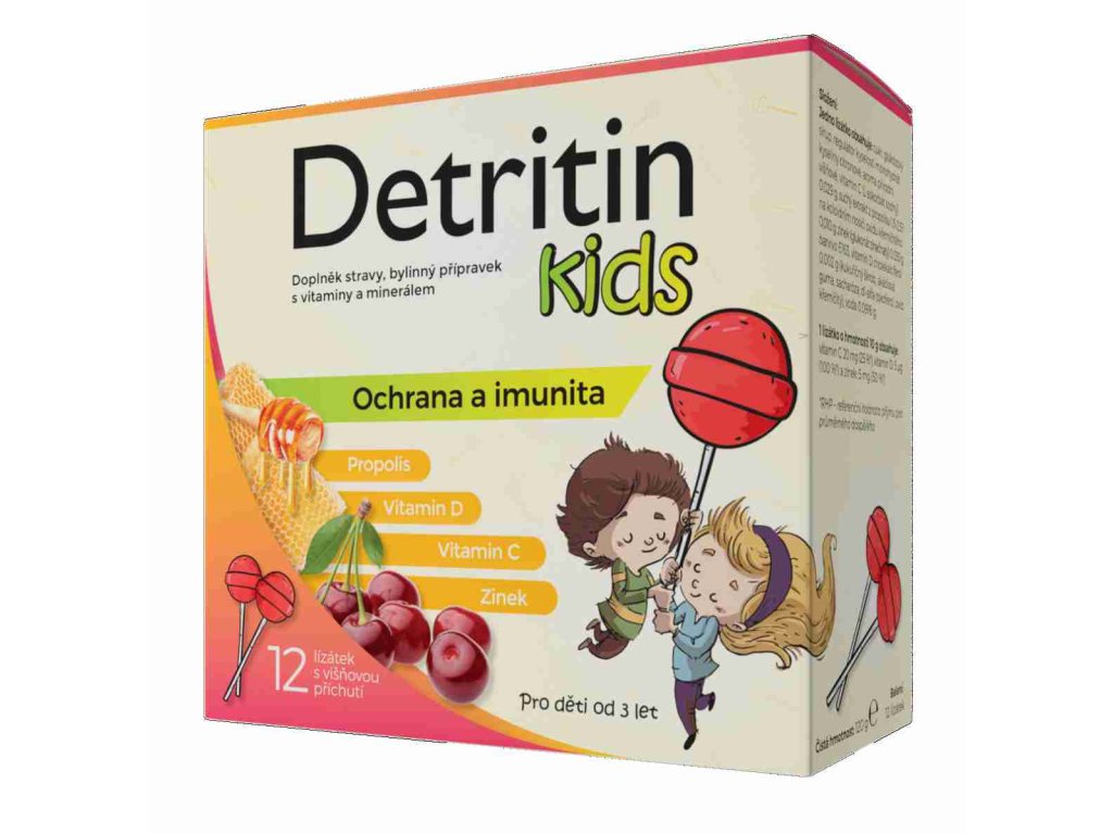 Přípravek Detritin Kids lízátka na imunitu višeň 12ks je registrovaný jako doplněk stravy. Nemá schválené léčivé účinky a nejedná se o lék. Doplňky stravy nejsou určeny jako náhrada pestré stravy. Nepřekračujte doporučené dávkování.