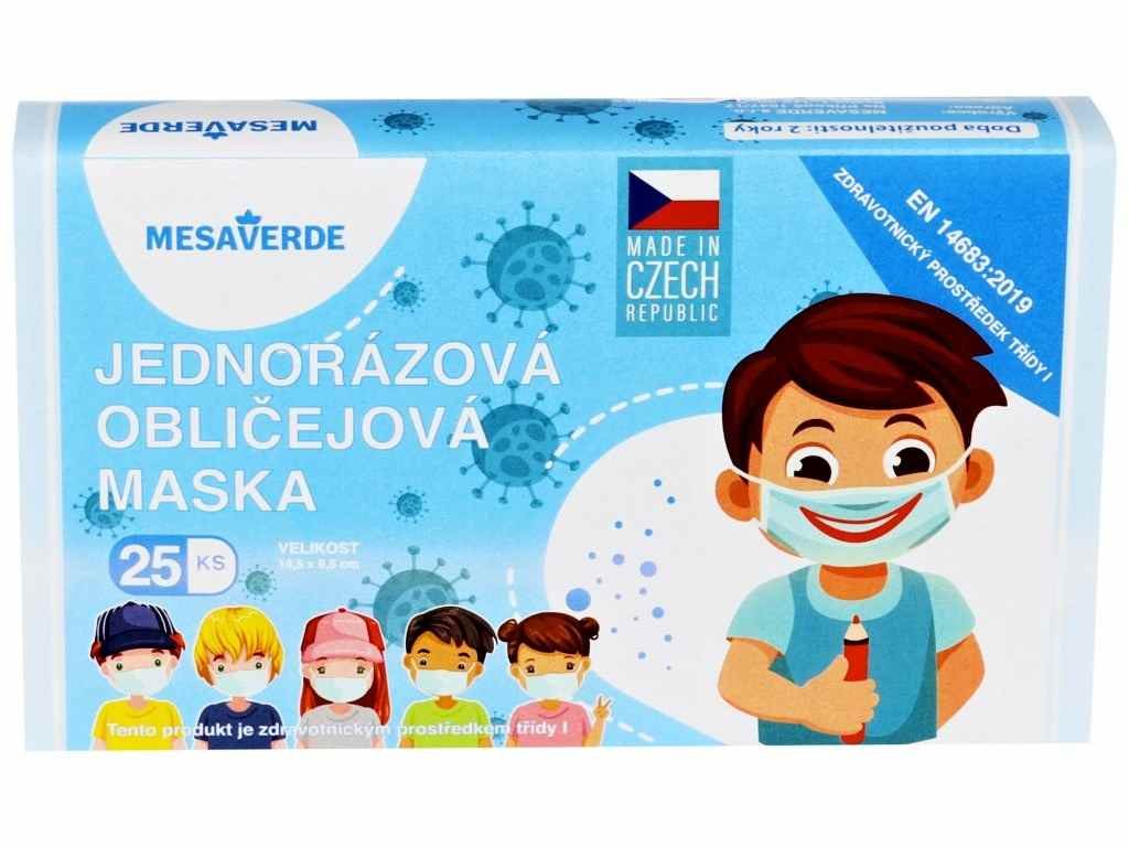 25 ks zdravotnická obličejová maska - rouška; roušky jsou zabaleny dohromady v hygienické průhledné fólii