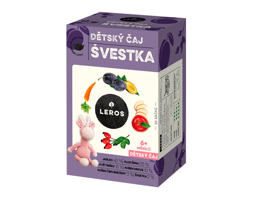 Ovocná čajová směs chutnající po podzimem vonících švestkách je oblíbenou součástí dětského pitného režimu. Jemný čaj ze švestek, jablek, šípků, ibišku a červené řepy je šetrný k dětskému zažívání. Vám i Vašim dětem bude chutnat teplý a v létě i vychlazený.