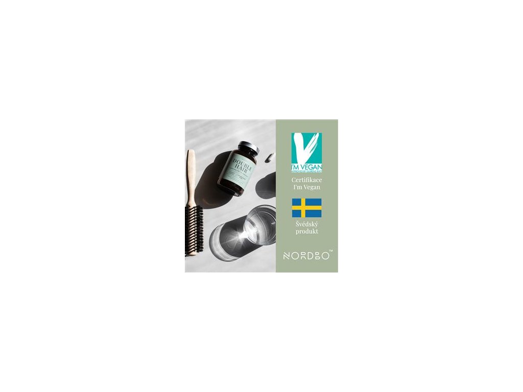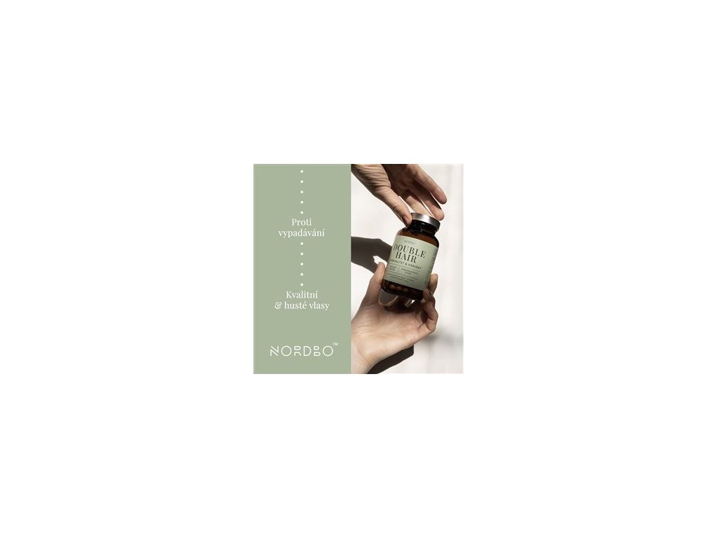 Nordbo Double Hair je velmi precizně zacílený doplněk stravy kombinují patentovaný extrakt AnaGainTM z BIO hrachových klíčků s vysokou dávkou biotinu. Vlastnosti těchto dvou složek jsou synergní a souvisejí se stimulací vlasových folikul, redukcí ztráty vlasů a jejich kondicí. AnaGainTM je speciální extrakt z hrachový klíčků, které jsou bohaté na složky aktivující buňky ve vlasových folikulech. Obnovují v nich mikrocirkulaci živin. Vlastnosti biotinu souvisejí s produkcí keratinu, který zvyšuje kvalitu vlasů. AnaGainTM byl testován v klinické studii s jedinci trpícími středně závažným vypadáváním. Po dvou měsících se snížila ztráta vlasů o 37 % a došlo k viditelnému zpevnění vlasových vláken.