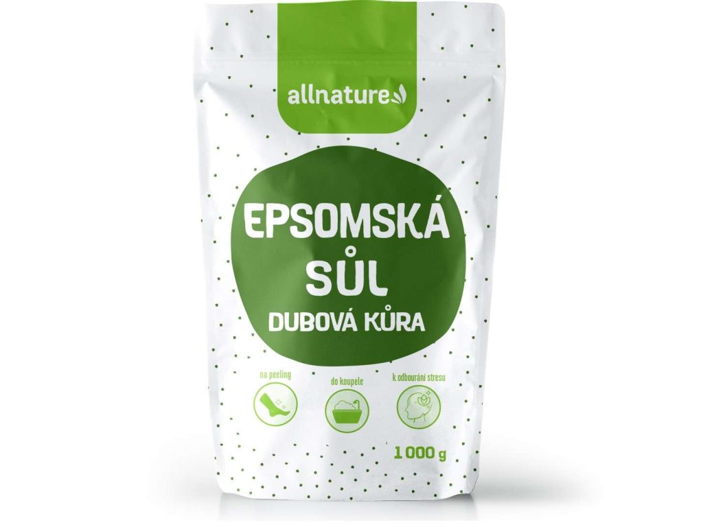 Epsomská minerální sůl s dubovou kůrou. Epsomská sůl představuje přírodní formu soli hořčíku a vyniká tak především vysokým obsahem hořčíku a síranu. Připravte si dubovou kůrou vonící relaxační koupel v Epsomské soli! Perfektní pro uvolnění svalů, odbourání stresu a detoxikaci. Dubová kůra má příznivý vliv na pokožku a zároveň pomáhá udržet normální funkci horních cest dýchacích. Koupel nohou v Epsomské soli navíc pomáhá zmírňovat otoky dolních končetin a ničí bakterie způsobující jejich zápach. Lze použít na celé tělo jako peeling.
