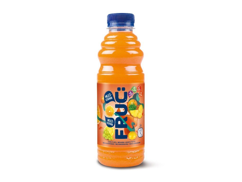 Multivitamínový nesycený nealkoholický nápoj z více druhů ovoce s 9 přidanými vitamíny a provitamínem A.Složení: voda, ovocné šťávy z koncentrátů a ovocného pyré (pomerančová 6,6%, citrónová 3%, ananasová 1% a hroznová šťáva 0,8%, meruňkové pyré z koncentrátu 0,2%, banánové 0,1% a guayové 0,1% pyré, mangové pyré z koncentrátu 0,1%, mučenková šťáva 0,1%), cukr, vitamíny (C, Niacin, E, kyselina pantothenová, B6, thiamin, kyselina listová, biotin, B12) kyselina (kyselina citrónová, aroma, stabilizátory (pektin, karubin) a provitamín A