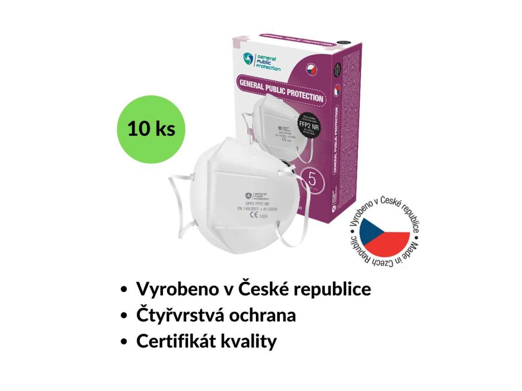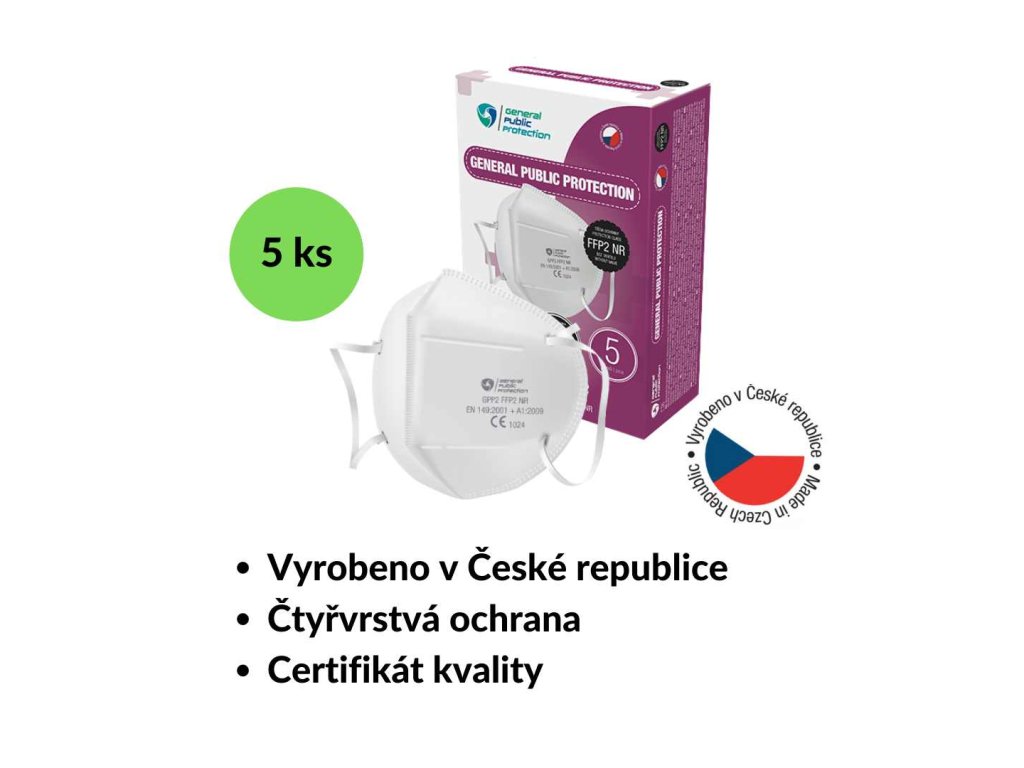 Respirátor GPP2 FFP2 NR (CE) přímo od českého výrobce. Respirátor s tvarovatelnou páskou kopírující tvar nosu a elastickou gumičkou k upevnění za uši s možností použít plastový háček k upínání respirátoru na temeni hlavy.