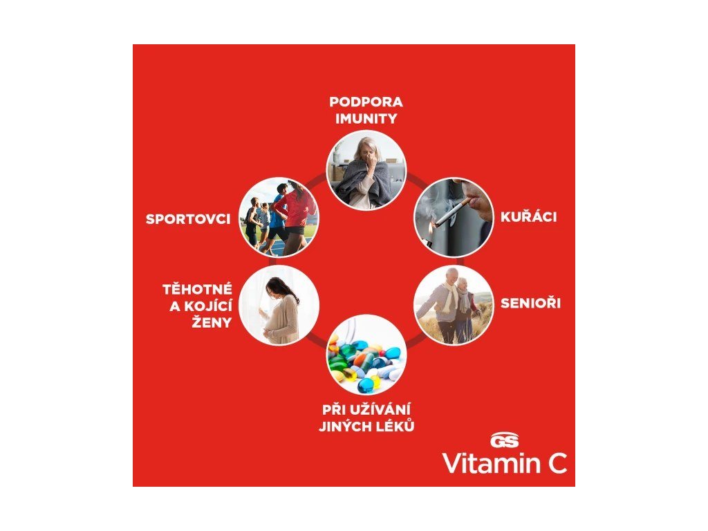 Užívání GS Vitamínu C je vhodné při chřipce, nachlazení a celkovém oslabení organismu. Doporučuje se zejména v období zvýšeného výskytu infekčních onemocnění.