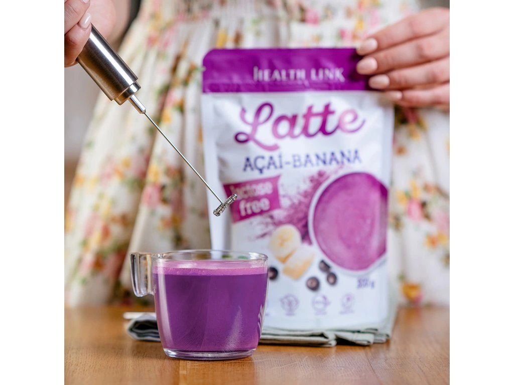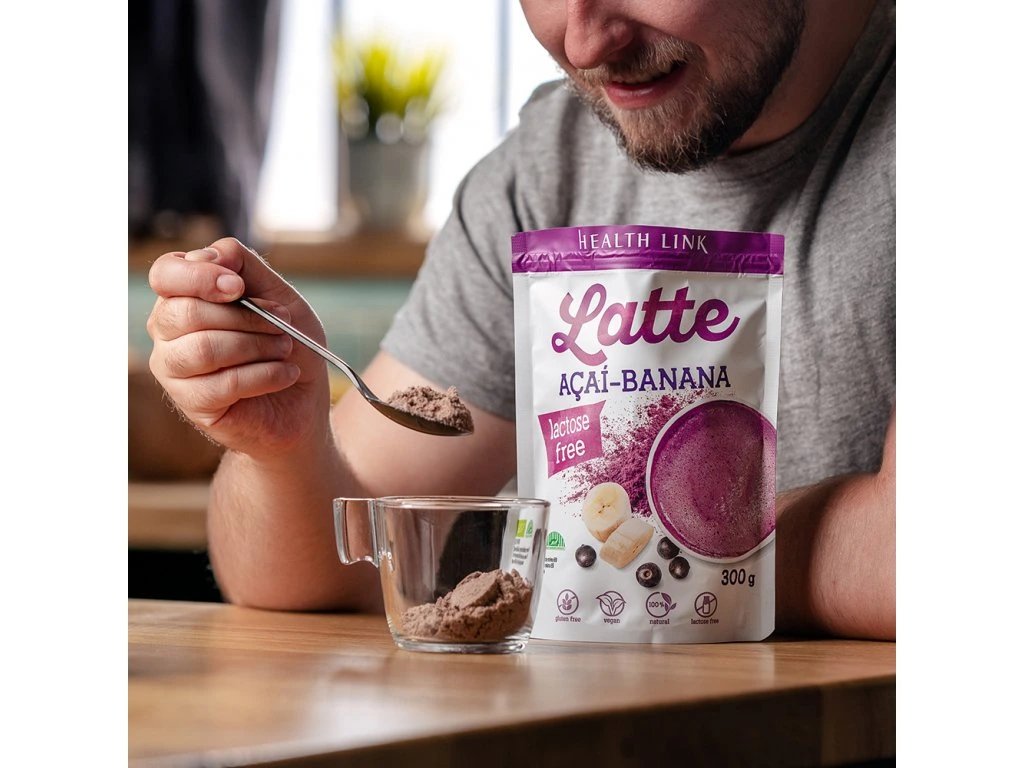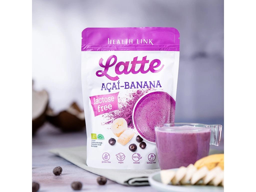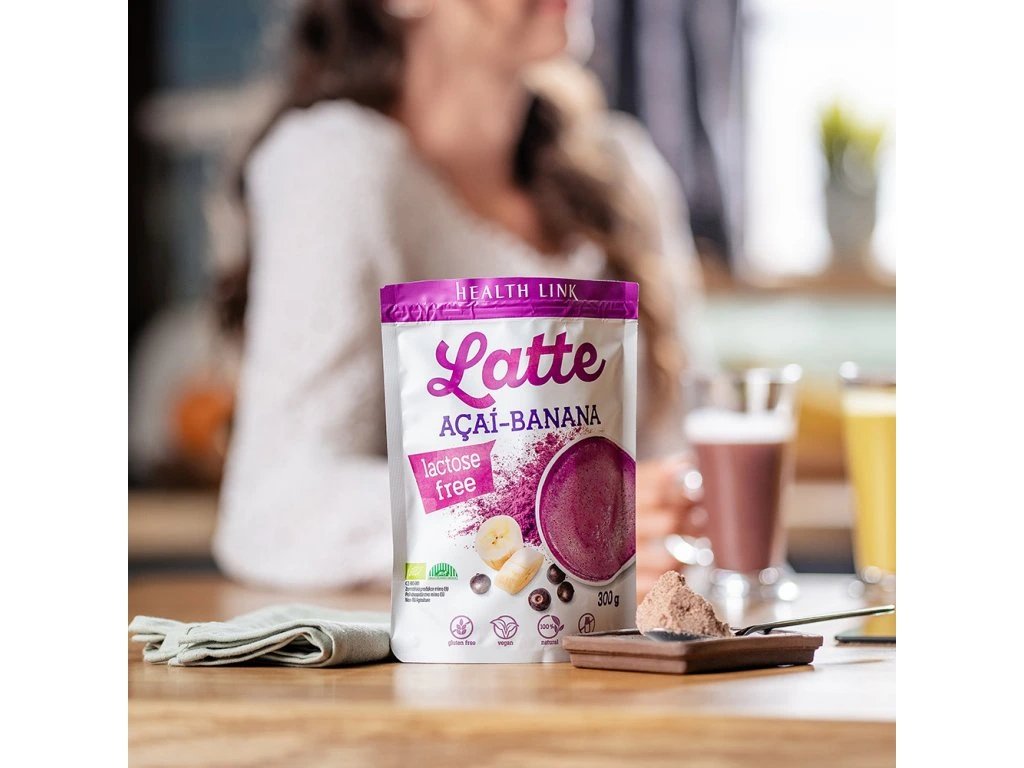 Osvěžující krémový nápoj Bio acaí & banán latte vás přenese do tropických dálek, relaxovat u něj můžete stejně jako u odpolední kávy nebo si jej dopřát jako sladký dezert.