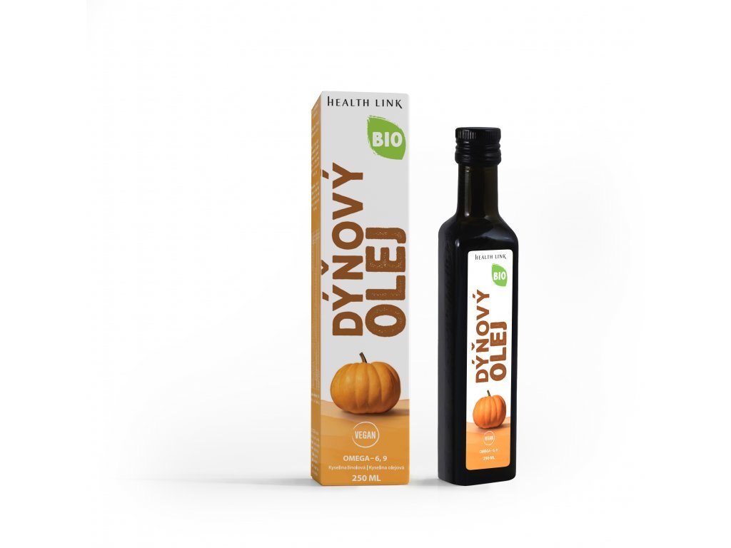 Pro výrobu tohoto BIO dýňového oleje jsou použita nepražená dýňová semínka z ekologického zemědělství. Olej je šetrně lisován za nízkých teplot, bez přístupu světla a vzduchu. Nejsou použita žádná chemická rozpouštědla ani jiné přísady. Kyselina alfa-linolenová přispívá k udržení normální hladiny cholesterolu v krvi. Příznivého účinku se dosáhne při přívodu 2 g denně.