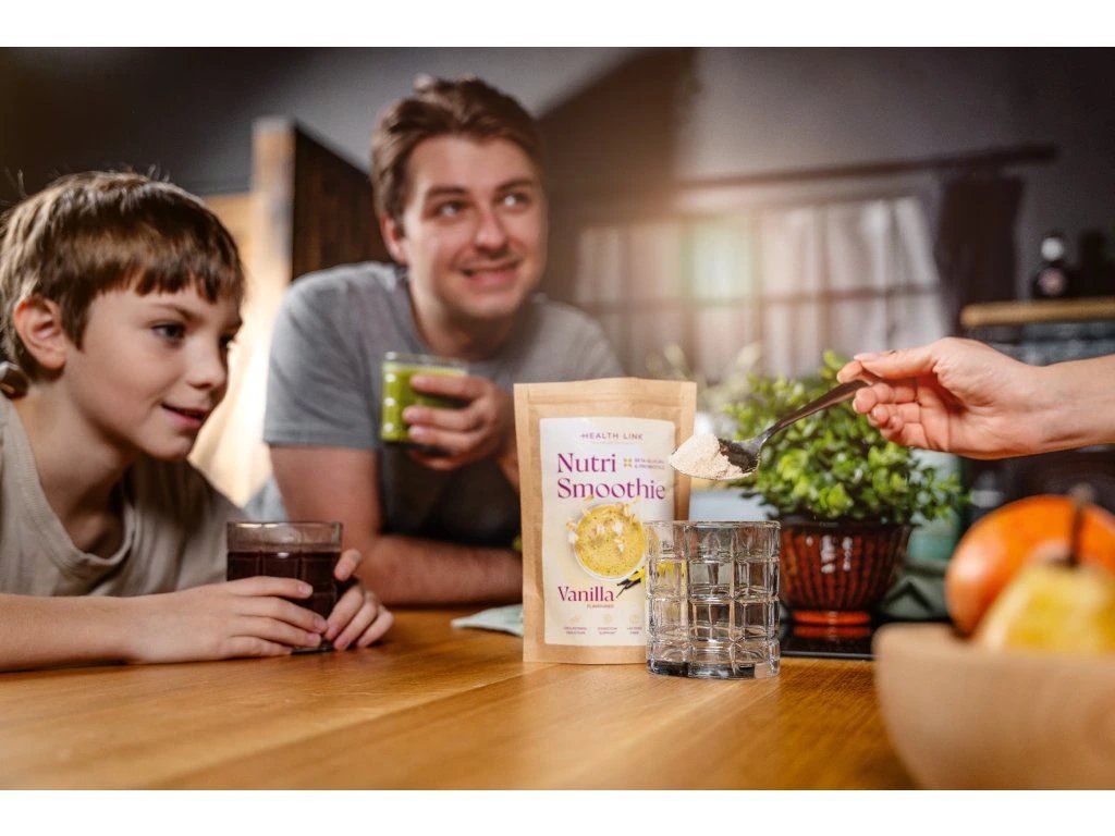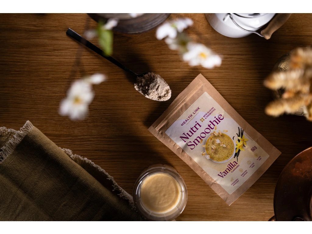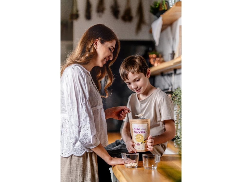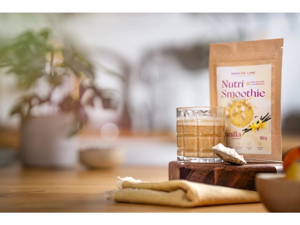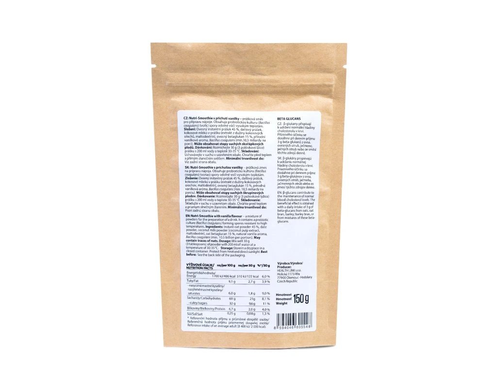 Nutri smoothie s příchutí vanilky, prášková směs pro přípravu nápoje. Obsahuje probiotickou strukturu tvořící spóry odolné vůči vysokým teplotám.