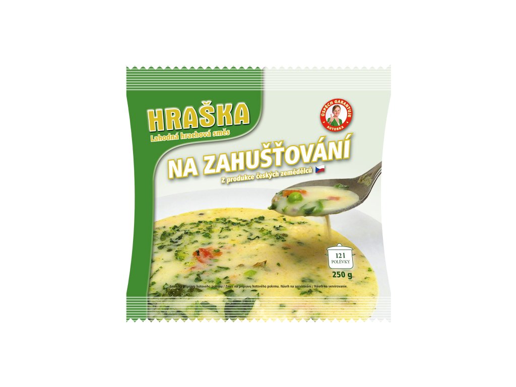 Jemná bez chilli a česneku. Hraška je unikátní český výrobek z ryze přírodních produktů, který neobsahuje lepek, cholesterol, glutaman sodný, konzervanty ani barviva. Tato lahodná hrachová směs umožňuje zdravé zahušťování polévek, omáček, šťáv a gulášů. Pokrmy připravené z Hrašky mají lahodnou chuť, krémovou hladkost a vysokou výživovou hodnotu. Jídla z Hrašky jsou výjimečná i svojí vyšší stravitelností. Hraška se připravuje z mletého hrachu, který je zbaven slupek. Tato skutečnost výrazně usnadňuje trávení. Slouží k přípravě základu pomazánek, dresinků, majonéz a bešamelových omáček na zapekání zeleniny. Hráška je vhodná pro řadu vegetariánu, veganů, diabetiků, celiaků a osob vyznávající zdravý životní styl. Proč vyzkoušet Hrašku na zahušťování? Desítky způsobů využití (pomazánky,majonézy,při zapékání, zahušťování polévek, omáček, leča, …) Obsahuje bílkoviny, vitamíny, antioxidanty, vlákninu. Nízký glykemický index. Zdravá náhrada vajec (ne však našlehaný sníh). Pokrmům dodavá pěknou barvu. Žádný lepek, cholesterol, barviva, konzervanty.