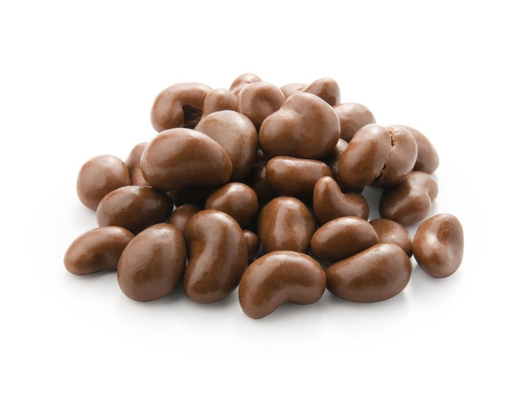 Dražované kešu ořechy, kešu jádra v mléčné čokoládě.