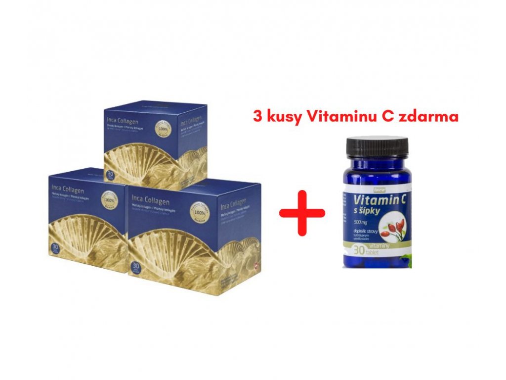 AKCE: Při nákupu 3x Inca Collagen 30 sáčků nyní dostanete 3x Vitamín C s šípky 500 mg 30 tbl. zcela ZDARMA!