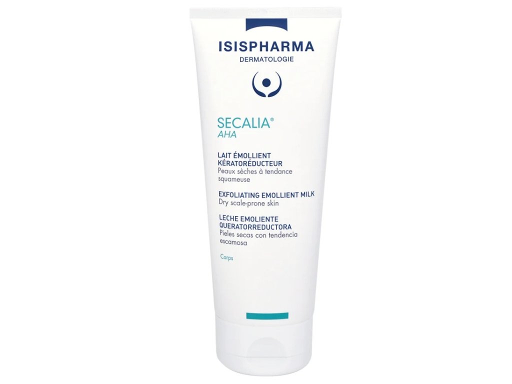 ISISPHARMA SECALIA® AHA keratoredukční zvláčňující mléko je speciálně navrženo pro péči o suchou a šupinatou pokožku. Díky svému optimálnímu složení a přírodním aktivním látkám, jako jsou bambucké máslo, olej Sacha Inchi, glycerin a rostlinný skvalan, obnovuje kožní bariéru a poskytuje dlouhotrvající hydrataci. S dvojím účinkem peelingu, který odstraňuje šupinky a zabraňuje jejich vzniku díky obsahu 7 % AHA (kyselina glykolová a kyselina mléčná), zanechává pokožku jemnou a hladkou.