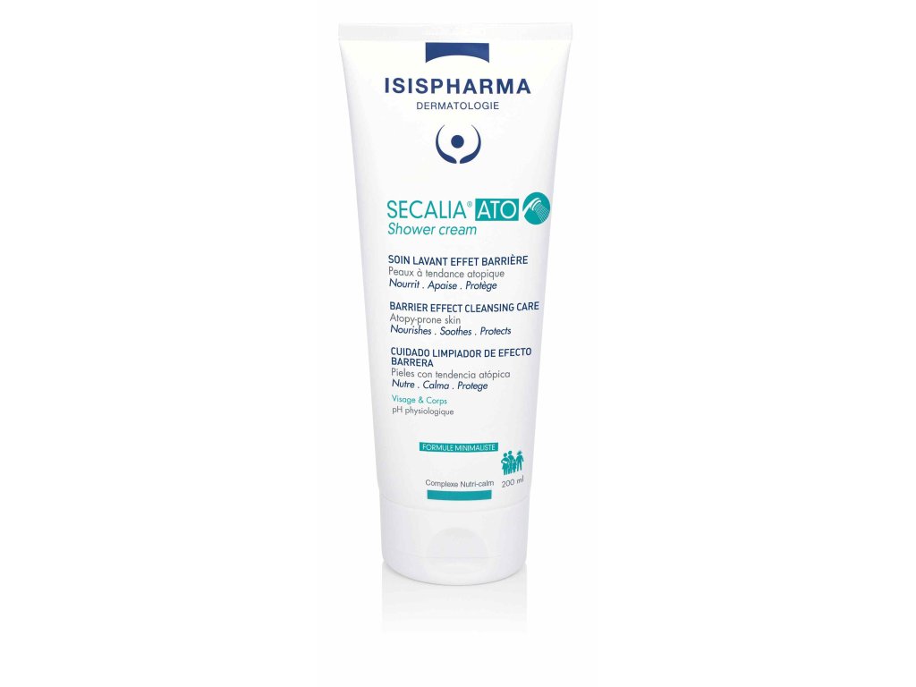 SECALIA ATO Sprchový krém jemně čistí a účinně zklidňuje svědění i napětí. Jeho bohatá textura, obohacená o Nutri-calm komplex, posiluje kožní bariéru a zvyšuje její odolnost vůči každodenním agresím. Po sprchování je pokožka chráněná, uvolněná a vyživená, přičemž zůstává pružná a hebká. Minimalistické složení bez mýdla zajišťuje velmi dobrou snášenlivost pro pokožku i oči. Klinicky ověřená účinnost.